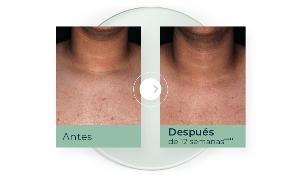 Sabemos que los puntos negros, barros y espinillas en la espalda, pecho y hombros, pueden afectar no sólo el aspecto de tu piel, sino también tu autoestima. Por eso, desarrollamos la nueva DermoPure Crema Corporal, que reduce imperfecciones y manchas post-acné en la piel.*